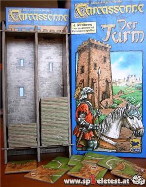 Carcassonne wird dreidimensional, Türme überragen die Stadt und Gefolgsleute werden gefangen genommen. Im www fand man sie – die Bauanleitung für den Carcassonnekartenspender. In dieser 4. Erweiterung liegt einer bei; für alle die bis jetzt zu faul zum Basteln oder mit den freistehenden Nachzugstapeln zufrieden waren. Vom Gebrauch des Kartensackes ist wahrscheinlich jedermann schnell abgekommen.
