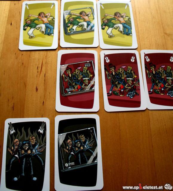 Es wurde auch noch eine andere Wertungsvariante angeboten, wo man zuerst die Musiker mit einer Karte wertet, danach die mit zwei Karten und erst zum Schluss mischen die Bands, die drei Karten im Pool liegen haben, die Hitparade auf. Das Spiel ändert sich nicht merklich, da einfach nur ein anderes Kriterium hergenommen wird.