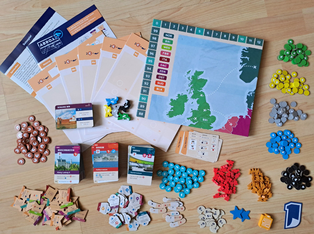 Abroad vermischt auf eine angenehme aber auch herausfordernde Art und Weise Management- und Reise-Spielelemente. Ständig ist man in der Zwickmühle, was man zuerst tun soll und wann der ideale Augenblick gekommen ist, um seine Ortskarten auszuspielen. Denn um diese perfekt auszunutzen, sollten sowohl die geforderten Voraussetzungen vorhanden sein, als auch der Wochentag stimmen, um möglichst die Bonus-Belohnung einzusacken. Um der Planungsorgie dann noch die Krone aufzusetzen, benötigt man, um sich die siegpunktträchtigen Bucket-List-Plättchen holen zu können, auch ein entsprechendes Set an Ortssymbolen. Also viele Elemente, die man meistens nicht unter einen Hut bekommt.