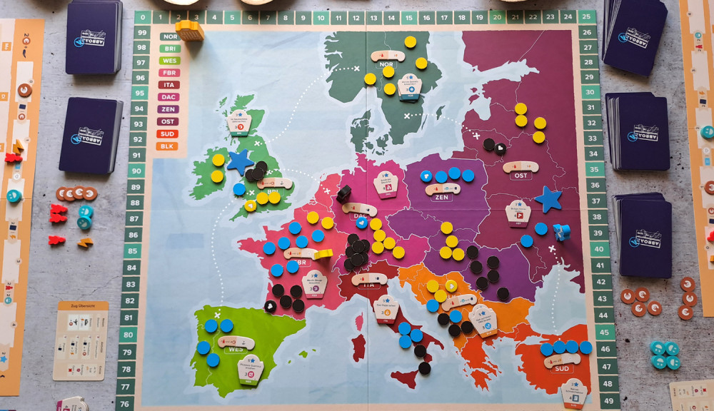 Leider gibt es jedoch an der Präsentation und Redaktion des Spiels einiges zu bemängeln. Weckt das toll gestaltete Cover sofort die Reiselust, so wird diese beim Anblick der Europa-Karte gleich wieder abgetötet. Wer bitte schön hatte die Idee, die Regionen auf dem Spielplan in einem Potpourri aus Rottönen einzufärben? Auf den Ortskarten wird zudem zwar das zugehörige Land genannt und gezeigt, hier hätte man aber mit einem kleinen Punkt noch die ungefähre Lage des touristischen Highlights vermerken können. Die Bilder auf den Ortskarten sind teilweise unvorteilhaft gewählt und machen nicht unbedingt touristische Werbung für die jeweiligen Orte oder bilden sogar etwas anderes als das Genannte ab (z. B. die Hagia Sophia in Ankara statt des Präsidentenpalastes). Die Spielregel selbst ist kurz gehalten, ein paar zusätzliche Zeilen zu bestimmten Spielsituationen wären aber vielfach hilfreich gewesen. Insgesamt scheint die redaktionelle Arbeit leider ein wenig zu kurz gekommen zu sein.