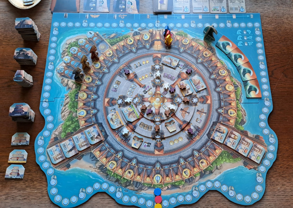Die grundlegenden Spielregeln von Atlantis Exodus sind eingängig. Der Streit um die Spielerreihenfolge, der Weg des Königs, welcher mit dem Einsammeln von Ressourcen beendet wird, die wiederum für vielerlei Aktionen ausgegeben werden können. Der Teufel sitzt aber wie so oft im Detail, denn eine Vielzahl von zusätzlichen und kleinteiligen Regelergänzungen schraubt ganz ordentlich am Schwierigkeitsgrad. Die Lernkurve ist ziemlich steil, so dass man vielfach erst in der zweiten oder dritten Partie bemerkt, worauf man zusätzlich achten sollte.