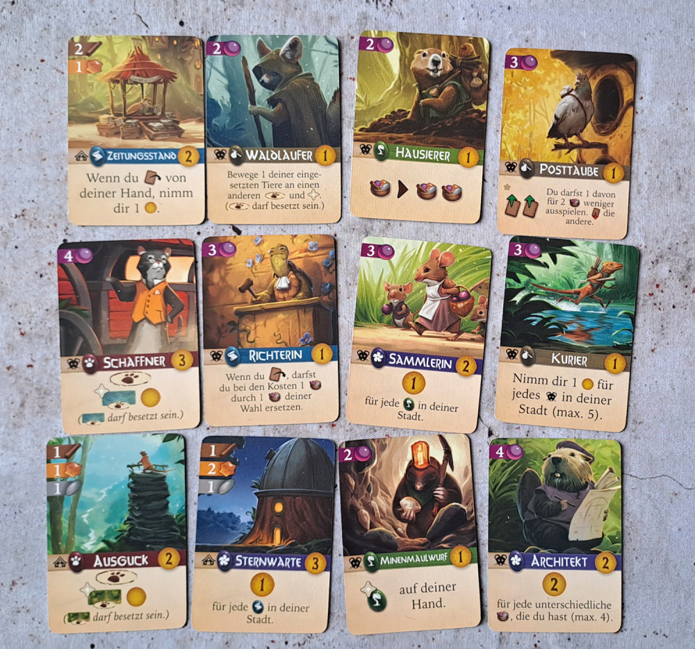 - Karten kleiner als in Everdell und teilweise schlecht zu erkennen
