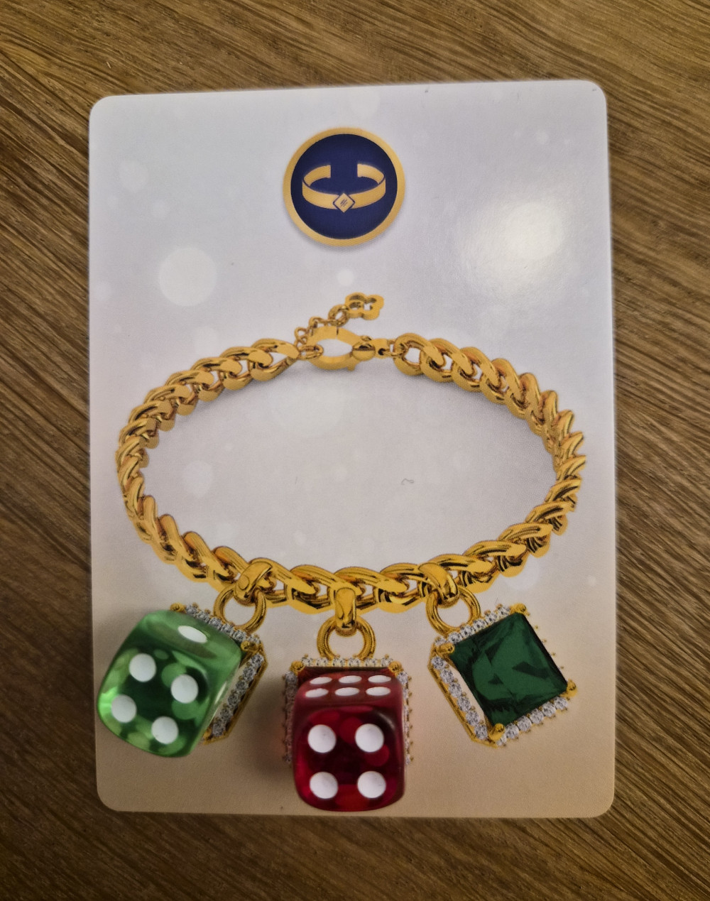 Jetzt zählt nicht mehr die Augenzahl, sondern ausschließlich die Farbe der Würfel. Wer am Zug ist, wählt ein Schmuckstück aus der gemeinsamen Auslage und platziert passende Würfel auf die noch freien Felder des jeweiligen Klunkers. Wird ein Schmuckstück dadurch vollendet, darf man es sofort an sich nehmen und es wird Teil der eigenen Schmucksammlung.