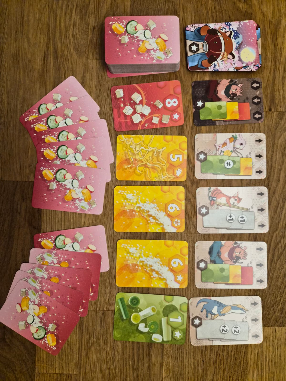 Was am Ende bleibt, ist ein Kartenspiel, bei dem man die eigene Auslage möglichst gut optimieren muss, um Punkte zu machen. Das Spielprinzip ist dabei solide, aber wenig überraschend und bietet kaum neue Ideen. Schade ist vor allem, dass das eigentlich spannende Thema Essen spielerisch nicht mehr hergibt und hinter den Möglichkeiten zurückbleibt.