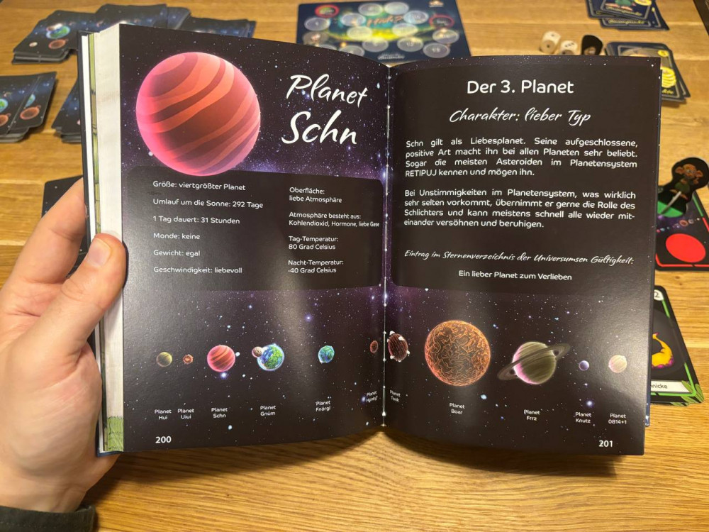 Über 200 einzigartige Wesen warten auf uns, entdeckt zu werden. Die Spielschachtel ist prall gefüllt mit Karten und überwältigt uns ein bisschen beim Sichten. Das dazugehörige Buch muss man vorab nicht gelesen haben aber hilft die Welt besser zu verstehen und in ihr hineinzutauchen.