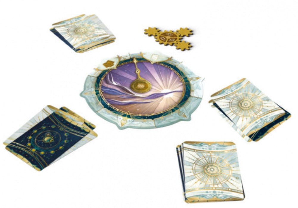 Wagt euch gemeinsam an einzigartige Herausforderungen in einem Universum voll rätselhafter Uhren, vom Aufbruch bis zum Neuanfang. Das Spiel kommt in einer edlen Box, die wie ein Chronometer anmutet. Darin verbergen sich zehn verschlossene Umschläge mit jeweils vier Uhrenrätsel und einem eigenen Regelblatt.