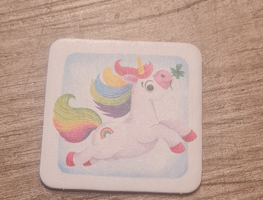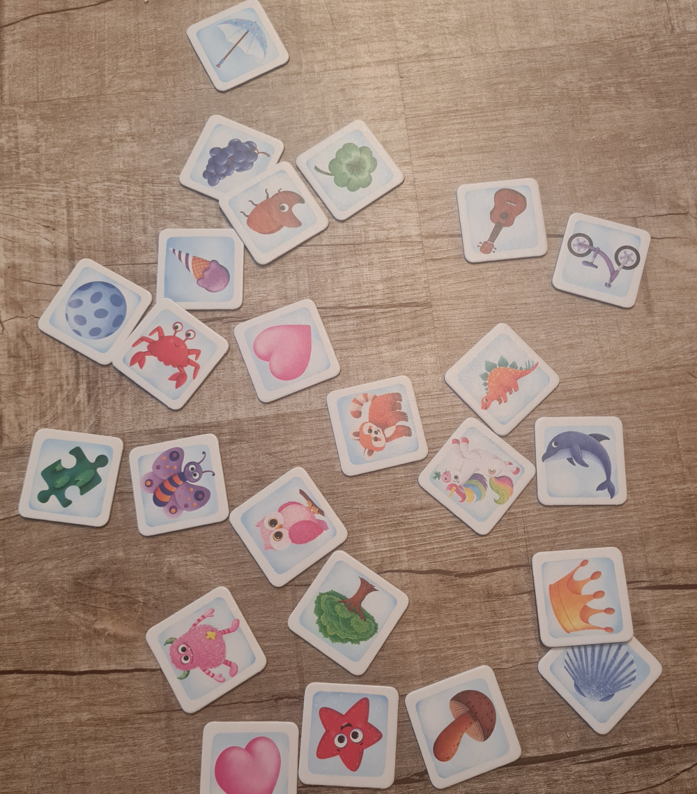 Zeigen alle vier Würfel bereits aufgesammelte Motive, gilt Einhorn-Alarm: Wer das Einhorn zuerst schnappt, darf sich stattdessen ein beliebiges ausliegendes Plättchen sichern. Wer fälschlich greift, verliert eines seiner gewonnenen Plättchen. Das erzeugt eine kleine Zwickmühle: Sofort aufs Einhorn, mit Risiko, dass wir doch ein Motiv übersehen haben – oder erst scannen, dafür riskieren, dass jemand anders das Einhorn wegschnappt.