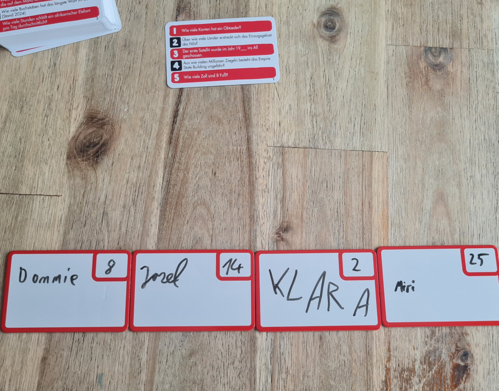 Der erste Clou des Spiels: Wir wollen nicht möglichst nah an der richtigen Antwort liegen. Gewonnen hat die Runde auch nicht, wer am weitesten danebenliegt. Stattdessen gewinnen diejenigen, die sich irgendwo dazwischen bewegen. Also möglichst „normal“ antworten. Die richtige Antwort zu kennen, ist dabei durchaus hilfreich. Gleichzeitig reicht oft auch ein solides Bauchgefühl.