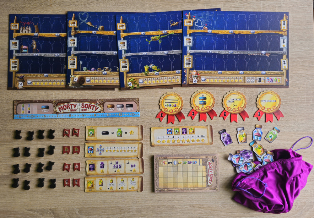 Morty Sorty Magic Shop hat uns auf mehreren Ebenen deutlich angesprochen: der Aufbau und auch die Partien sind rasch, spaßig und durch unterschiedlichste Kombinationen der Ziele stets abwechslungsreich - wobei wir uns hier über noch mehr Optionen wirklich gefreut hätten. Die Regeln sind simpel und gleichsam in Deutsch, Englisch wie auch Französisch vertreten; da sollten die wenigsten außen vor bleiben. Gesamt zeigt sich hier bereits ein klares Bild, und zwar ist Morty Sorty Magic Shop ein komplett familienfreundliches Erlebnis für praktisch jedermann! Was uns aber dennoch in sämtlichen Partien abging waren zumindest kleine Spielerinteraktionen, denn diese sind abgesehen vom Wegschnappen von Plättchen gänzlich fehlend. Auch wenn diese nicht unbedingt nötig sind, würden Zusatzoptionen diesbezüglich einfach zu einem intensiveren Gesamterlebnis führen.