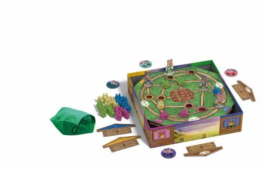 Das Spielbrett wird in der Schachtelunterseite platziert und zeigt die Wiese, auf dem sich die Hasenkinder in farblich passenden Erdlöchern verstecken können. Nur der Kopf schaut dann oben heraus. Die Spielerfiguren stellen die Eltern dar, die sich immer entlang der eingezeichneten Wegen bewegen können, um die Wildlinge einzusammeln. In den Ecken der Schachtel sind die Ställe angeordnet, die allerdings zu Beginn noch weit offen stehen. Zu Beginn werden vier Häschen aus dem Beutel gezogen und in den farblich passenden Erdlöchern platziert.