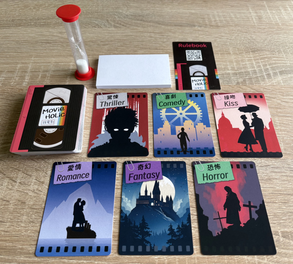 Die Regeln von Movie Holic könnten einfacher kaum sein: Jeder Spieler erhält drei Karten auf die Hand auf denen jeweils ein sich von den andern unterscheidendes Filmgenre mit graphischer Untermalung aufgedruckt sind. Über zwei vollständige Durchgänge hinweg spielen drei Teilnehmer (Startspieler und Nachbarn) im Uhrzeigersinn je eine Karte aus (also insgesamt drei). Nun gilt es rasch zu sein, denn wer als erstes einen Film (oder Serie) nennen kann, der auf diese Genrekombination zutrifft, der erhält zwei Punkte und startet die Sanduhr. Der nächstschnellste dem ein weiterer Film einfällt, der staubt nochmals einen Punkt ab.