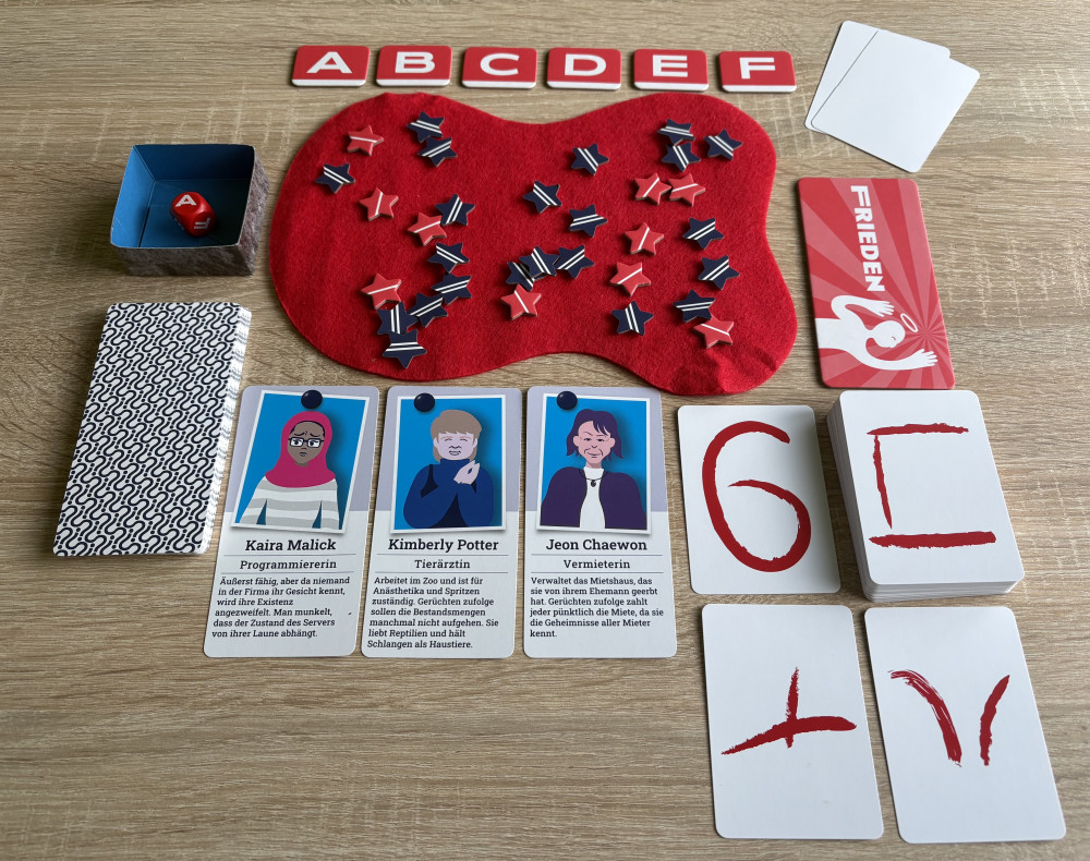 Auch die Action der „pantomimischen“ Darstellung der Leiche reicht dabei nicht aus, um den Spielspaß zu retten, da dieser Aspekt des Spiels wohl zumeist eher beiseitegedrängt wird und lediglich mit den Karten versucht wird die Hinweise zu geben. Schade eigentlich, da das Grundprinzip wirklich spannend ist, jedoch fehlt es dafür eben einfach an Abwechslungsreichtum und ausgeklügelteren Charakteren… Auch von einer Hand voll mehr Täter könnte das Spiel zusätzlich noch gut profitieren…