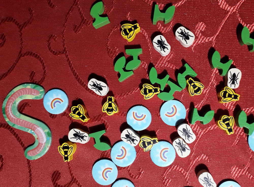 Bienen, Ameisen und Regenbogenplättchen warten auf ihren Einsatz.