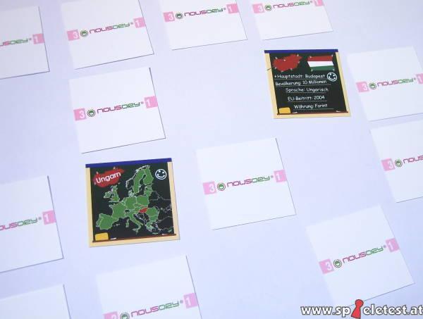 Die Karten sind gut verarbeitet, schön und informativ. Bleibt nur zu hoffen, dass die EU nicht all zu schnell neue Mitglieder hinzugewinnt; sonst ist das Spiel "unvollständig". Es wäre vielleicht eine Idee gewesen ein paar Blankokarten beizulegen, um selbst erweitern zu können. Immerhin gibt es zum Zeitpunkt des Erscheinens vier EU-Beitrittskandidaten.
