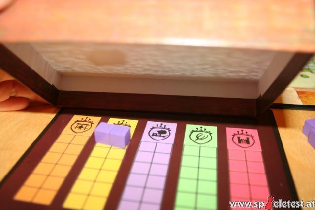 Daher liegt der Schwerpunkt noch mehr auf Kartenglück als auf Interaktion mit den Mitspielern. Man spielt eben dahin, bis ein Jahr zu Ende ist und versucht noch ein wenig mit den geheimen Einflusssteinen die Gebiete zum eigenen Glück zu beeinflussen.