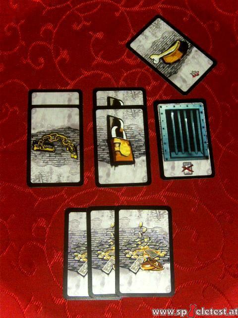 Bei sechs Spielern fällt es aber nicht immer leicht die Übersicht über bereits zugeteilte Karten zu behalten. Auch nicht ganz einfach ist das Beachten der Verlustkombination der drei Paare Hund/Kette/Schloss. Ich bin sicher das wurde in unseren Partien hin und wieder übersehen.