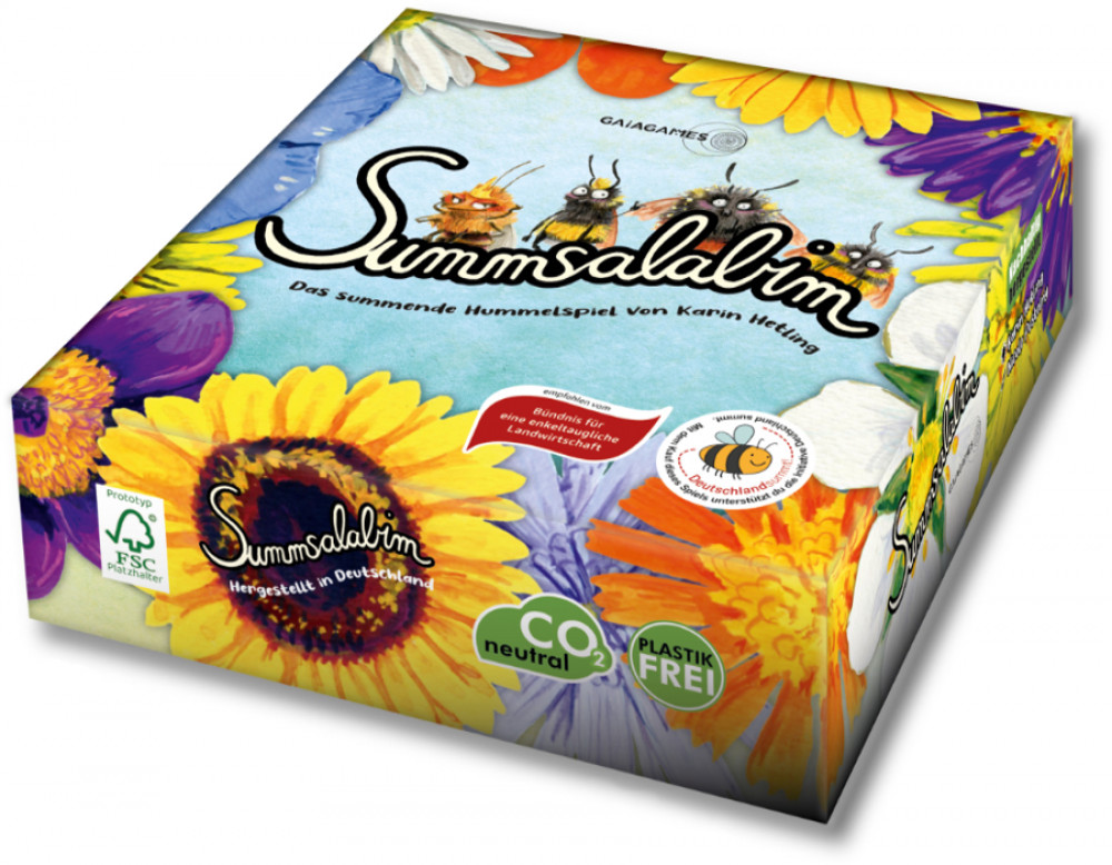 Summsalabim ist ein kooperatives Spiel, das neben dem Spiel auch noch Wissen vermittelt: Welche Blüten sind das? Welche Arten von Hummeln gibt es? Pestizide sind schädlich für Tiere... Passend zum Naturthema ist das Spiel nachhaltig produziert.