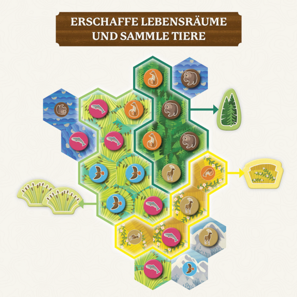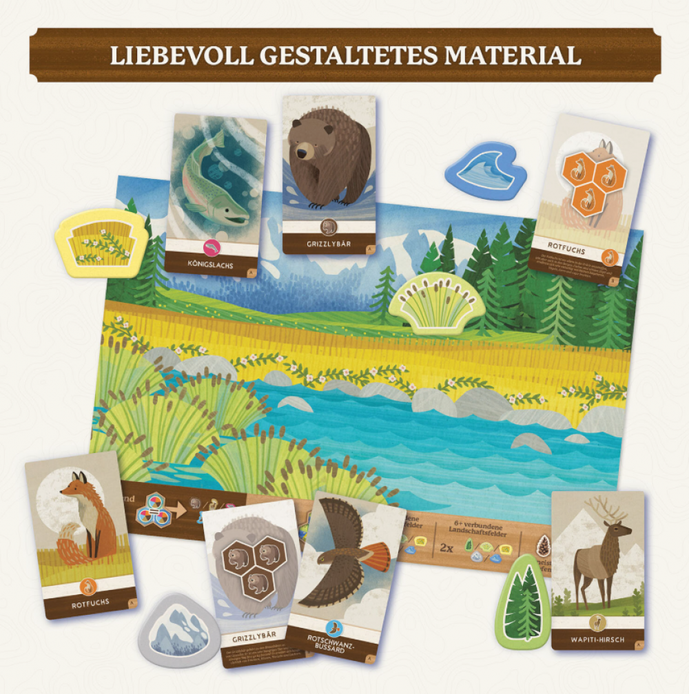 Erfolgreiche Spiele wirken wie ein Magnet. Um den Lebensraum in Cascadia auszubauen und zu gestalten, wurde das preisgekrönte Spiel nun auf die wesentlichen Elemente reduziert und kindgerecht aufbereitet.
