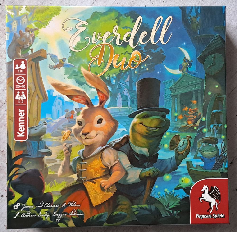 Die Macher der Everdell-Reihe verstehen es nahezu perfekt, die richtigen Knöpfe zu drücken und mit ihren Veröffentlichungen Aufmerksamkeit zu erregen. So muss sich das hier vorliegende, deutlich kleinere Everdell Duo keinesfalls hinter dem großen Everdell und seinen Erweiterungen verstecken. Sowohl was das Material als auch die Illustrationen betrifft, sehr gut ausgestattet, kommt es zwar kompakter aber mit nicht weniger Spielspaß im Gepäck daher. Wer Everdell kennt findet sich trotz der neuen Spielregeln schnell zurecht, grundlegende Mechaniken und Elemente wurden beibehalten. Aber auch Neueinsteigern erschließt sich die Spielregel relativ schnell. Die neuen Regeln und Abläufe verändern das Spiel so stark, dass es eine eigenständige Berechtigung im Everdell-Universum hat. Zudem ist es mit einer Spieldauer von rund 60 Minuten super schnell gespielt.