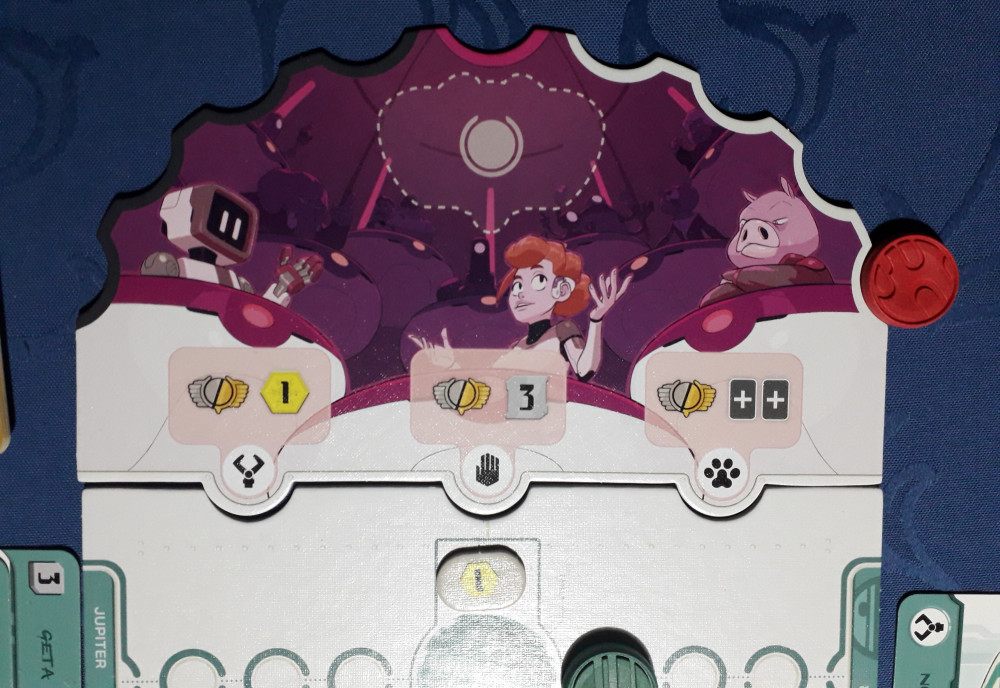 Das Privileg bringt erhöhtes Handkartenlimit. In Silber darf man fünf Diplomatenkarten halten, in Gold gar sechs. Das bringt erhöhte Auswahl. Zudem liefert die Privileg-Aktion noch Kredite, Zenithium oder zwei zusätzliche, zufällige Diplomaten auf meine Seite der Planeten. Das verbilligt das Anwerben weiterer Diplomaten. Das Priviligabzeichen ist ein Wanderpokal. Habe ich es, kann es sich der Gegner schnappen, ich verliere allerdings keine Handkarten, darf einfach im nächsten Zug nicht wieder auf mehr als vier nachziehen.