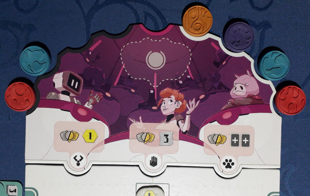 - Eine Diplomatenkarte mit passender Volkszugehörigkeit (Roboter, Mensch, Animod) abwerfen, das Privileg nehmen und je nach Volk einen Bonus erhalten.