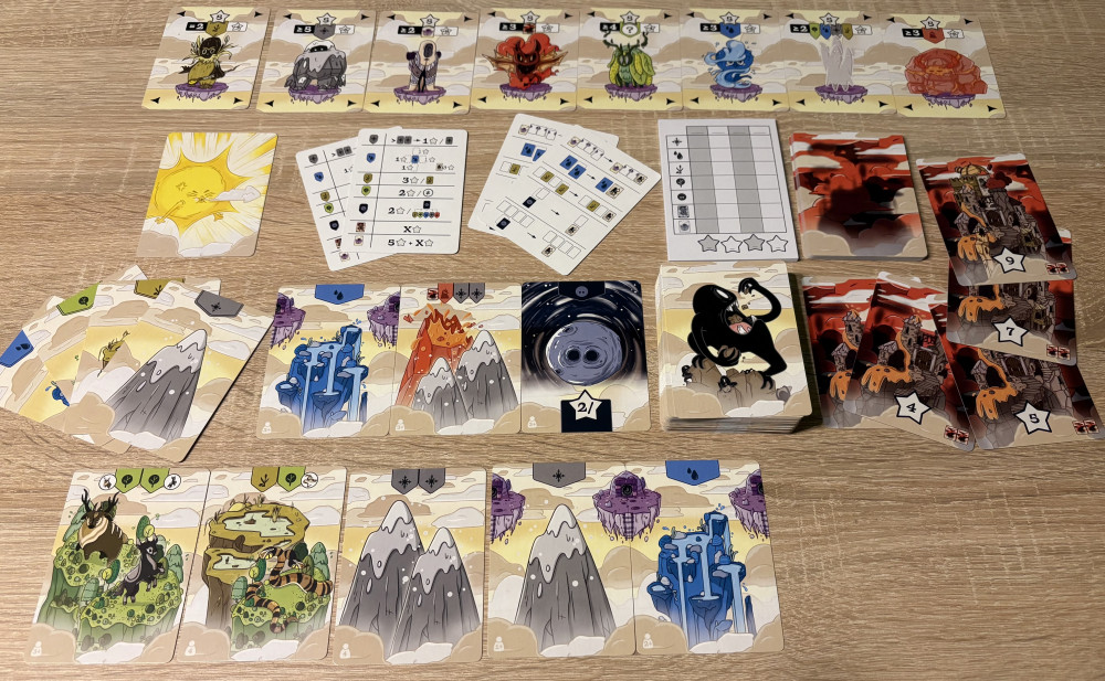 Die verspielten Illustrationen unterstreichen das luftige Thema, wirken aber manchem vielleicht einen Hauch zu verspielt – fast, als wolle die Optik mehr zaubern, als die Mechanik hergibt. Nach der ersten Partie stellt sich zudem das Gefühl ein, man habe die wichtigsten Kombinationen und Abläufe bereits gesehen. Die große Freiheit beim Legen lässt Raum für Kreativität, nimmt dem Ganzen aber Spannung und am Ende bleibt das Gefühl, dass dieser Ausflug in luftige Höhen zwar schön, aber nicht ganz himmlisch war – denn das gewisse Etwas bleibt irgendwo in den Wolken hängen.