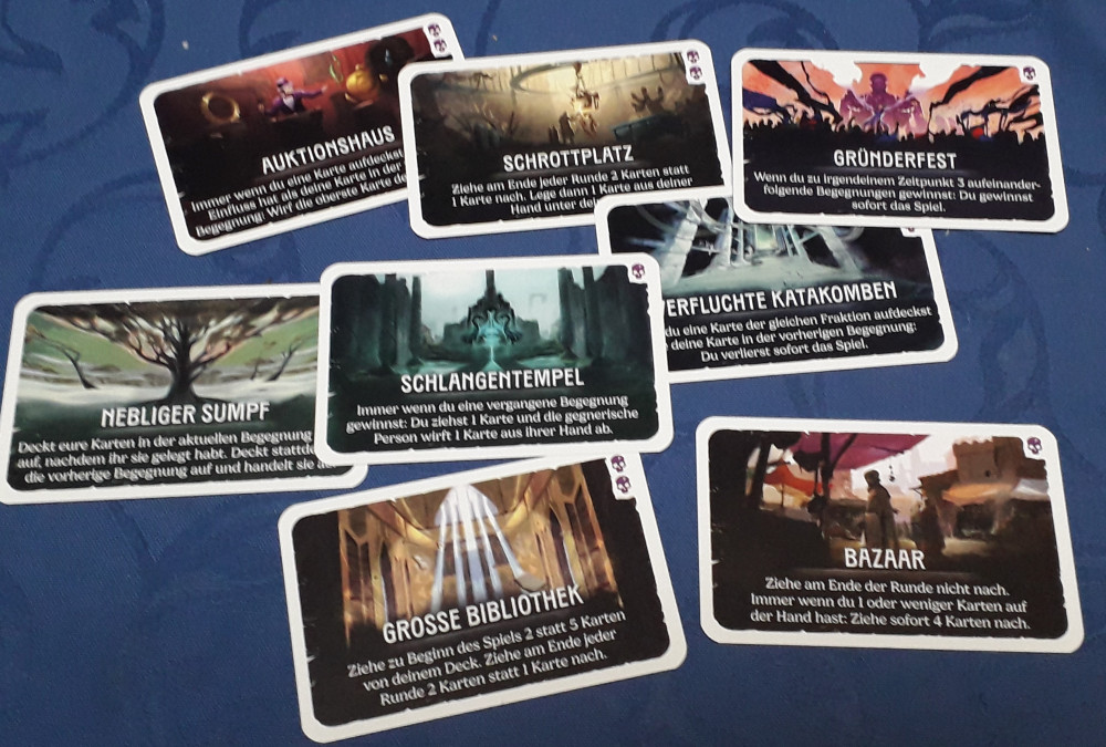 Die Schauplätze - es gibt acht verschiedene - bringen eine Zusatzregel mit in die Partie.