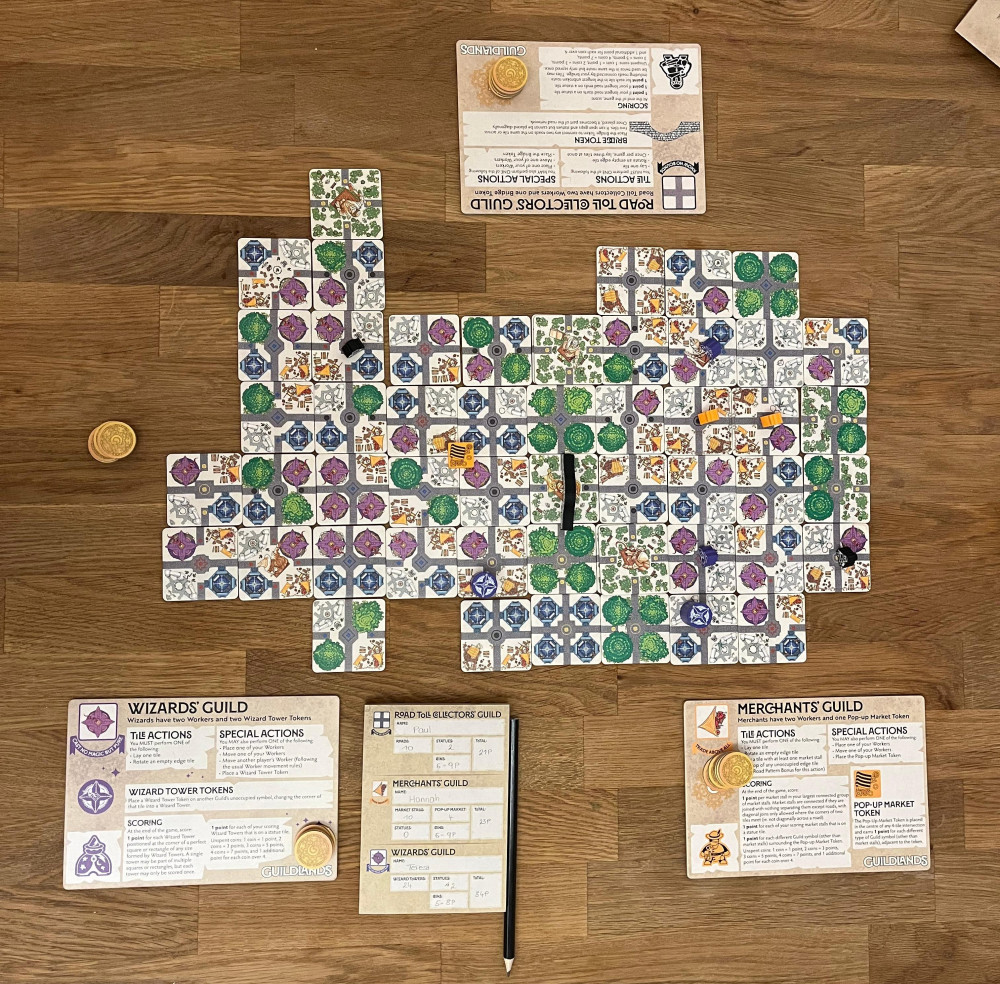 Dass jede Gilde auf unterschiedliche Arten ihre Punkte erzielt, ist eine innovative Komponente, die das Spiel trägt und die kreativ umgesetzt ist. Im Lauf der Partie wird die Stadt leider etwas unübersichtlich, was strategisches Denken zusätzlich erschwert. Es ist aber gut möglich, mehrere Runden hintereinander zu spielen, denn wenn man erst einmal eingespielt ist, dauert eine Runde deutlich kürzer als die angegebenen 60 Minuten.