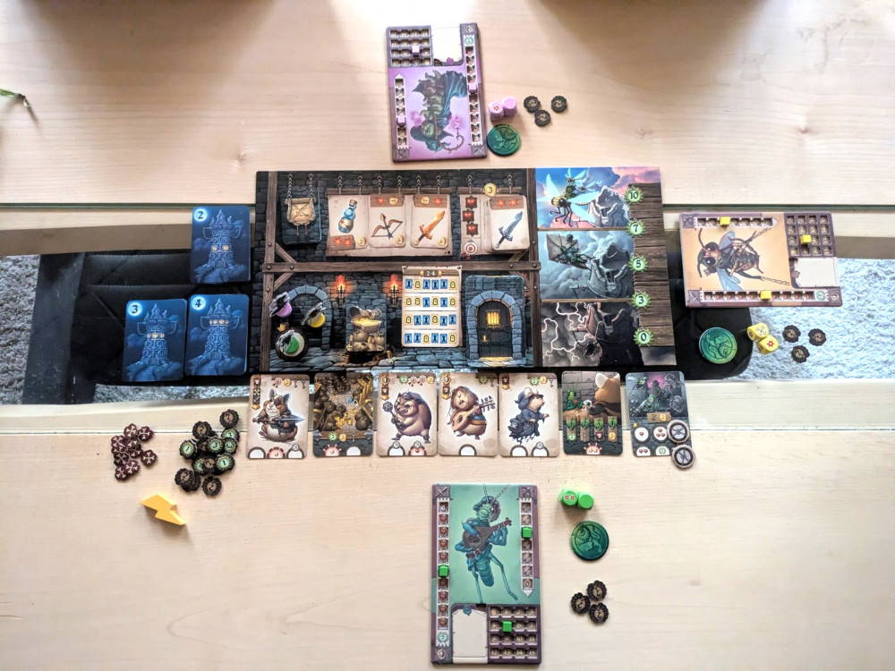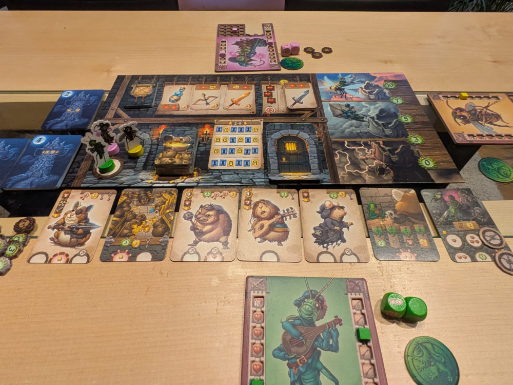Spielerisch bleibt Bug Run eher einfach. Die Mechaniken sind nicht besonders tief, und auch ein spürbarer Ressourcenmangel stellt sich nur selten ein. Genau dadurch bleibt das Spieltempo jedoch angenehm hoch, was Bug Run besonders gut für gemischte Spielrunden und Familien geeignet macht. Insgesamt ist es ein unterhaltsames Spiel für alle, die keine hochkomplexe Strategie erwarten, sondern Freude an etwas Chaos, kleinen Gemeinheiten und einem lockeren Wettlauf um den Sieg haben – weniger allerdings für Spieler, die eine tiefgehende oder stark thematische Dungeon-Erfahrung suchen.
