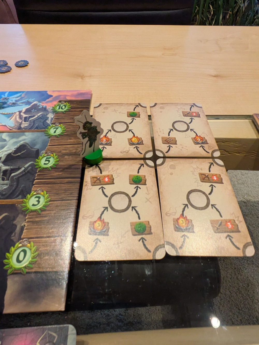Nach dem erfolgreichen Abschluss eines Stockwerks wird die Stufenkarte umgedreht und neben dem Spielplan platziert. So entsteht nach und nach der finale Fluchtplan. Gleichzeitig wird das nächste Level mit neuen Wachen und Quests aufgebaut, die frische Herausforderungen bereithalten.