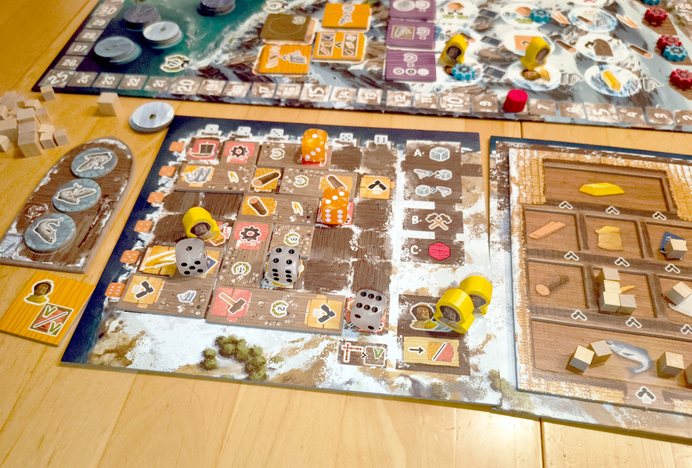 Im Prinzip könnten wir es schon dabei belassen, Ressourcen zu sammeln. Am Spielende werden nämlich alle Ressourcen in Fisch umgerechnet, drei Fisch bringen einen Siegpunkt. Das ist zwar ganz nett, aber nicht besonders einträglich.