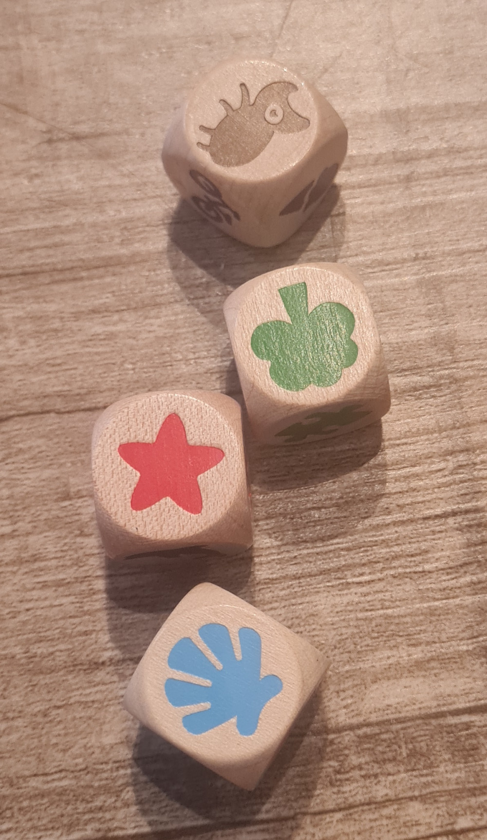 Wir würfeln vier Motive, alle Hände schnellen gleichzeitig über den Tisch, und wer die passenden Plättchen zuerst erwischt, bunkert Beute. Nur beim Feuer heißt es stillhalten, sonst verbrennen wir unsere Punkte.