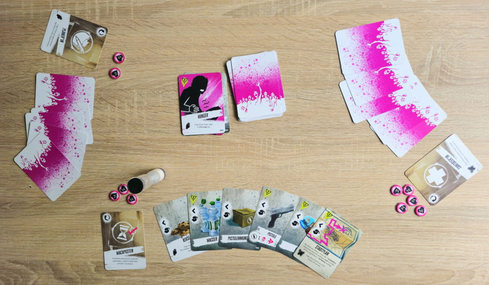 Jeder Spieler besitzt Ausdauer, welche benötigt wird um gewisse Kartenaktionen zu nutzen oder aber auch als eine Art Lebenspunkt verloren gehen kann. Zum Fliehen werden oftmals einige dieser benötigt, weshalb man doch etwas sparsam mit ihnen umgehen sollte! Im Verlauf ziehen die Spieler reihum eine Karte vom Deck, nutzen bis zu zwei Aktionen und beenden den Zug wieder. Idealerweise wird man mit den Handlungen Karten los die Belastungen aufweisen und somit Ausdauer rauben würden. Manche Aktionen wie zum Beispiel das Erschießen von Zombies können oftmals nur auf benachbarte Spieler genutzt werden, auch hier ist also Teamwork gefragt.