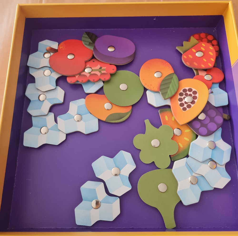 Ja, es gibt keine unterschiedlichen Schwierigkeitsgrade. Ja, es gibt keinerlei Varianz. Aber das macht nichts, solange das eigentliche Spielen so gut klappt, insbesondere zu dem Preis. Nur bezüglich der Alpha-Spieler-Problematik sollten Eltern bei reinen Kinderrunden vielleicht eine Hausregel einführen, dass Richtungsanweisungen immer abwechselnd erfolgen oder nur vom linken Nachbarn kommen dürfen. Aber das ist kein Fruit magik-spezifisches Problem.