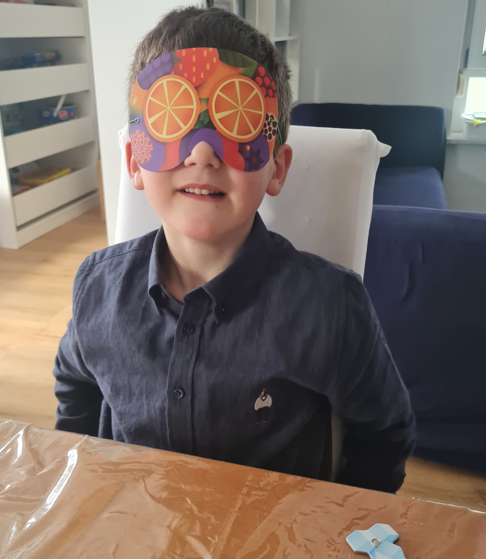 Wir machen zusammen einen Obstsalat. Aber obacht, nicht zu viel Zucker, sonst schmeckt er nicht. Aja, und wir bereiten ihn blind zu, sonst wäre es ja langweilig!