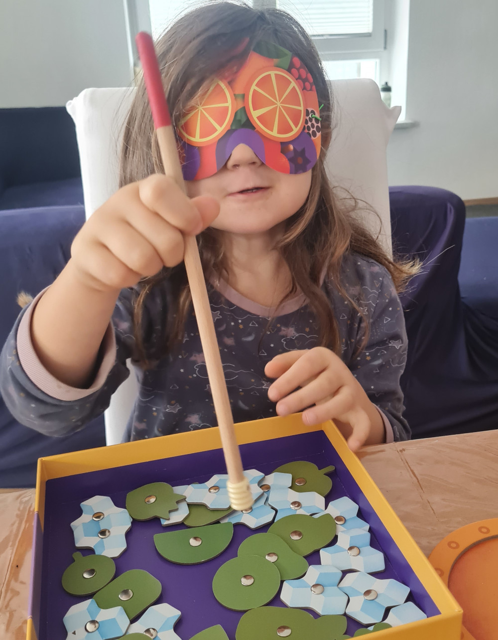 Aber es muss schon auch klar festgehalten werden: Der Weg ist hier ganz klar das Ziel. Außer dem blinden, mit Zurufen geführten Magnet-Angelspiel gibt es hier nicht viel. Selbst mit drei traurigen Gesichtern auf den Tellern haben wir das Spiel nicht verloren. Wurde halt nichts mit dem Obstsalat. Auf ein Neues!
