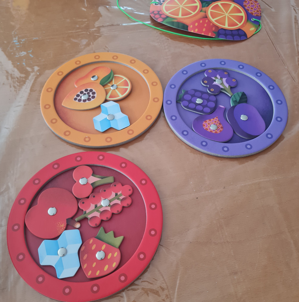 Im kooperativen Fruit magik versuchen wir insgesamt drei Obstteller mit farblich passendem Obst zu füllen, ohne dabei zu viele Zuckerwürfel zu erwischen. Ansonsten ist der Teller zu voll, der Salat zu verzuckert und wir erhalten ein trauriges Gesicht.