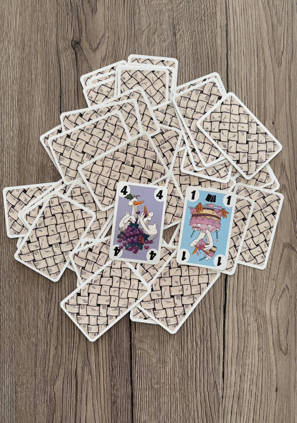 Zu Beginn des Spiels werden alle Karten als verdeckter Haufen in der Tischmitte ausgelegt und drei davon an jeden Mitspieler ausgeteilt. Wer an der Reihe ist, kann so lange Karten aufdecken, wie der Mut (oder die Maßlosigkeit) es ihm erlaubt. Anschließend muss er sich entscheiden, ob er die Karten auf die eigene Hand nehmen oder für die nächste Gans liegen lassen möchte. Falls jedoch eine doppelte Karte aufgedeckt wird, müssen alle offenen Karten sofort auf die Hand genommen werden. Ob man will oder nicht. Anschließend wird geprüft, ob dadurch das Snacklimit überschritten wurde. Denn von jeder Köstlichkeit dürfen sich nur so viele Karten auf der Hand befinden, wie die Zahl auf der Karte angibt. Haben wir uns überfressen, müssen wir alle Snacks der gesammelten Art wieder abwerfen.