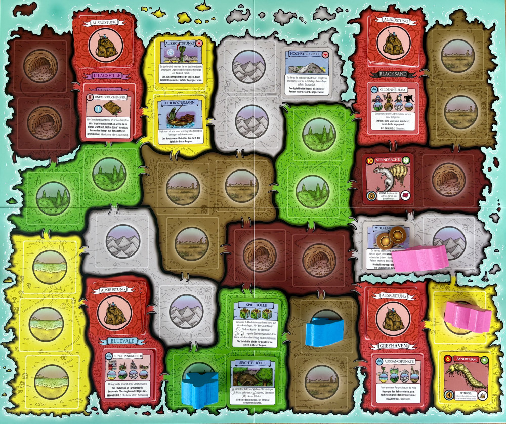Der modulare Spielplan sorgt dafür, dass die Welt ein Geheimnis bleibt – man weiß nie, welche Gefahren hinter der nächsten Region lauern, was den Entdeckerdrang konstant hochhält. Der spielerische Kern – Ausrüstung sammeln, Kämpfe bestreiten und Quests erfüllen – ist mechanisch solide, gewinnt aber erst durch die enorme Kartenvielfalt an echter Tiefe. Jede Region besitzt durch ihre spezifischen Decks eine eigene Identität.