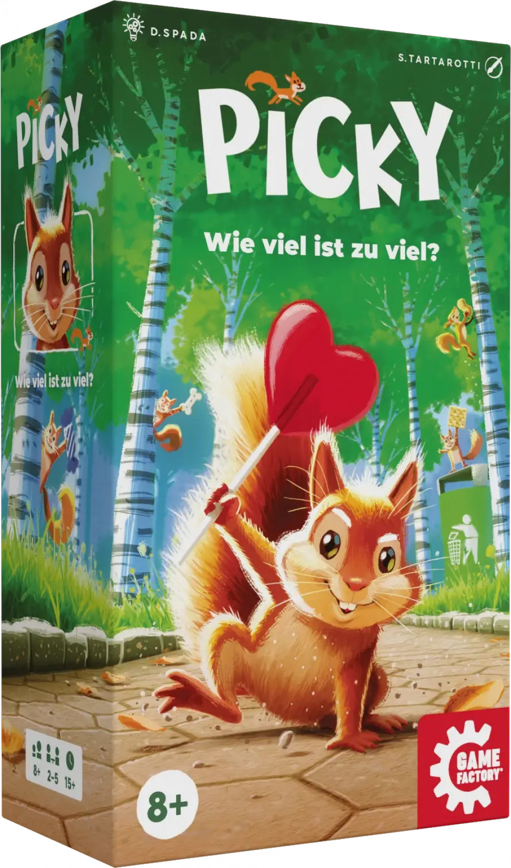 Picky ist ein Eichhörnchen, das Vorräte für den Winter anlegen möchte. Aber zu viel ist auch nicht gut! Warum? Weil die meisten verfügbaren Vorräte aus nicht artgerechten Süßigkeiten bestehen.