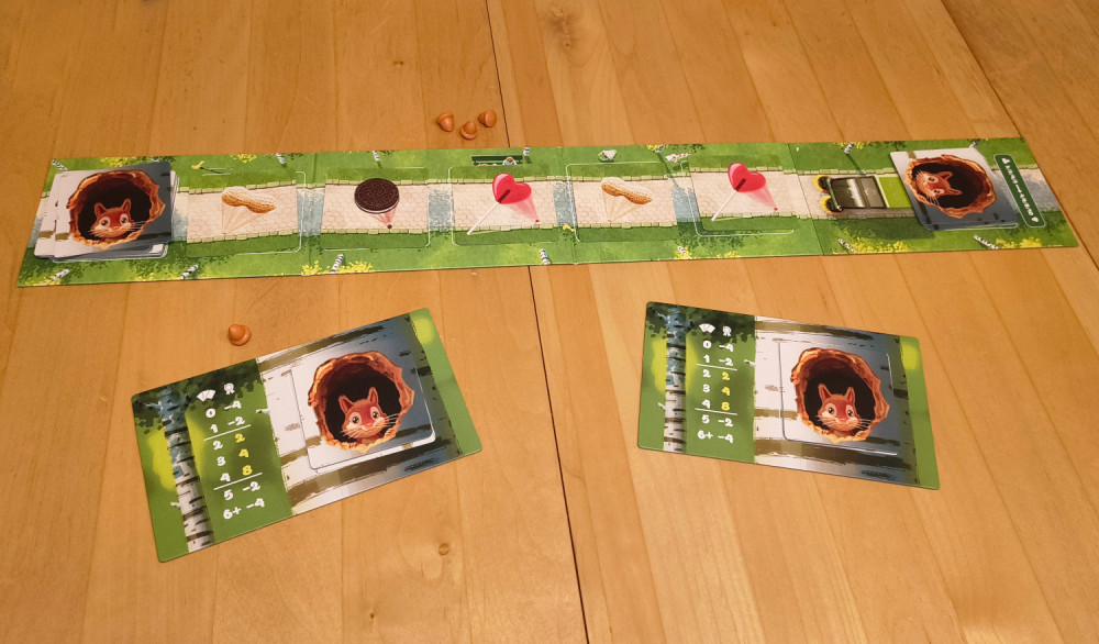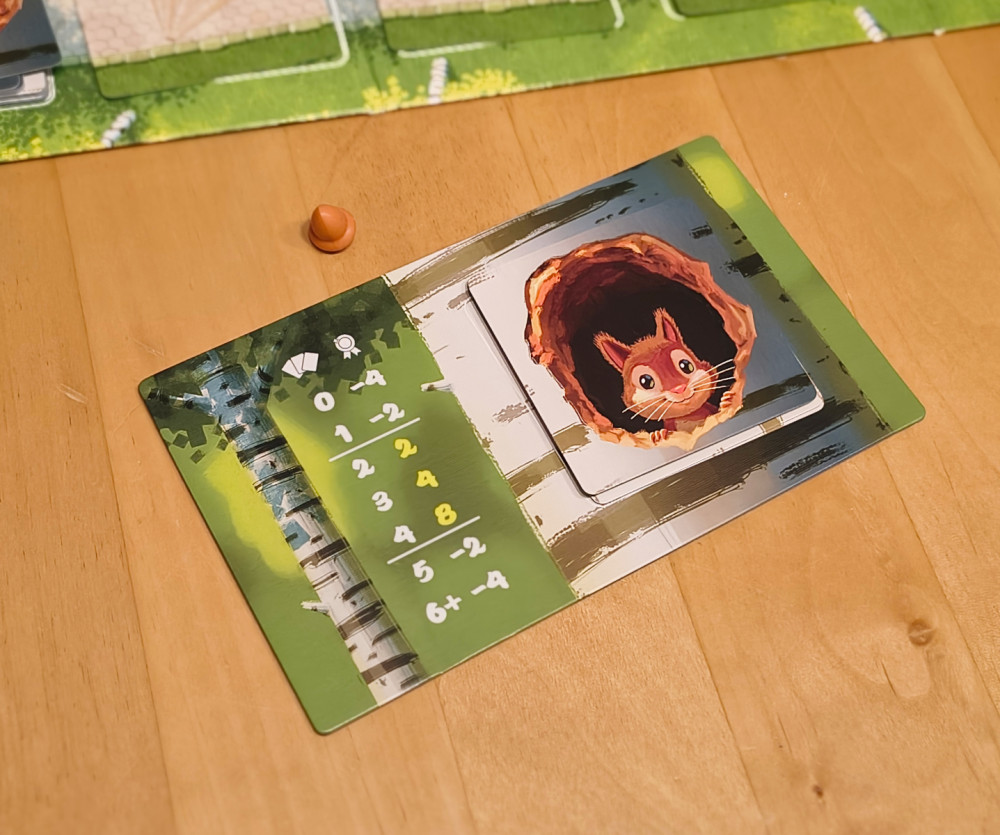 Natürlich darf man sich seine gesammelten Karten nicht ansehen. Man muss sich also merken, was man schon gesammelt hat. Wer sich auch noch merkt, was die anderen Spieler gesammelt haben, hat einen Vorteil. Man kann dann nämlich jene Sachen nehmen, die die anderen auch brauchen könnten. Und man lässt ihm das übrig, was sie nicht brauchen können. Natürlich immer vorausgesetzt, dass mir die Karten auch nutzen. Gerade gegen Spielende wird es ärgerlich, wenn man aus der Auslage nichts nehmen will, weil alles mühsam gehamsterte Punkte in Minuspunkte verwandelt (dazu gehört auch der Umstand, dass man immer ALLE Karten einer Sorte nehmen muss). Und dann sind auch noch die Eicheln alle. Verflixt!