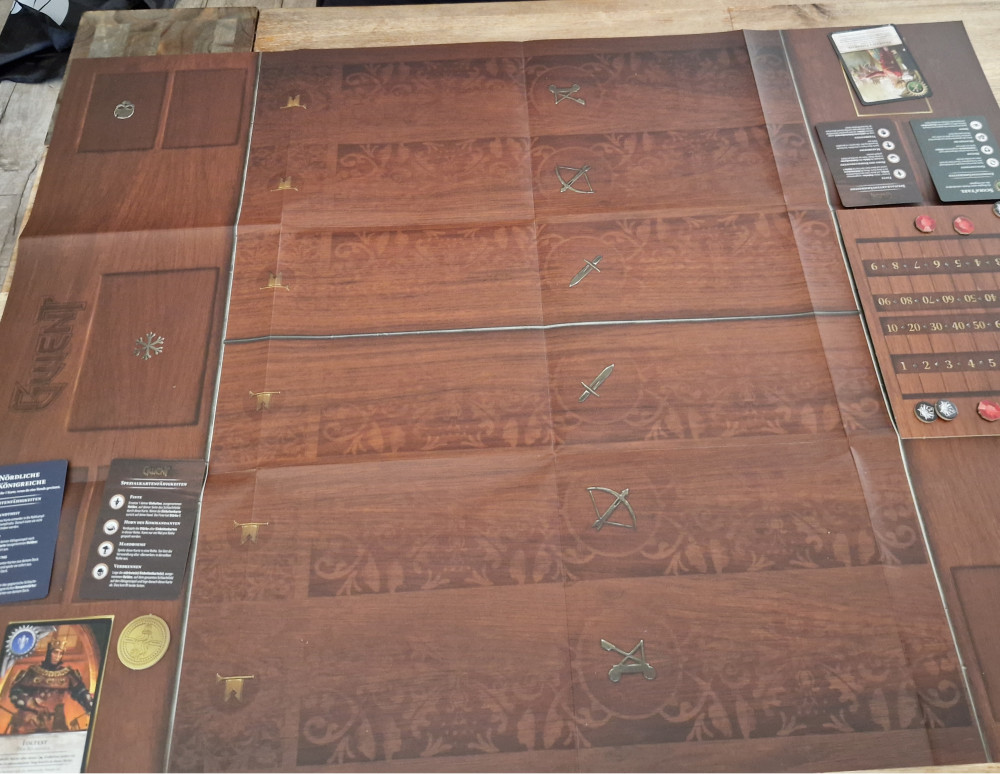 Wir wählen eine von fünf Fraktionen, ziehen zu Beginn zehn Handkarten (dürfen bis zu zwei Karten ablegen und neu ziehen) und bestreiten damit die gesamte Partie.