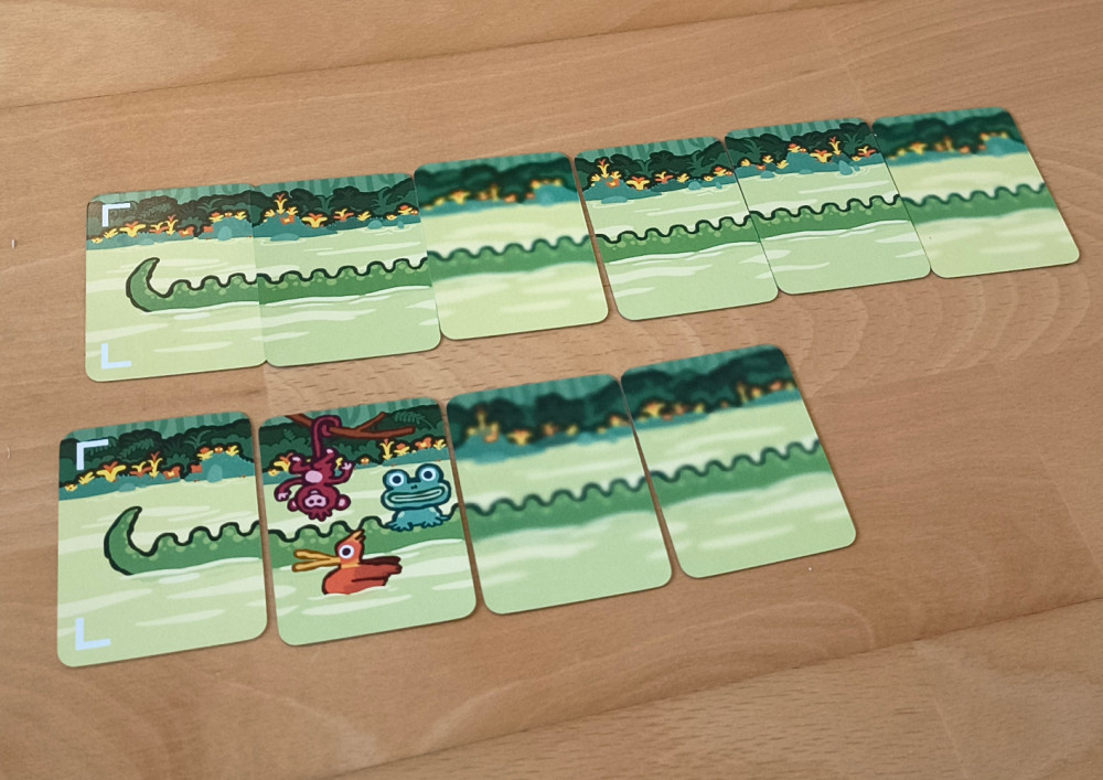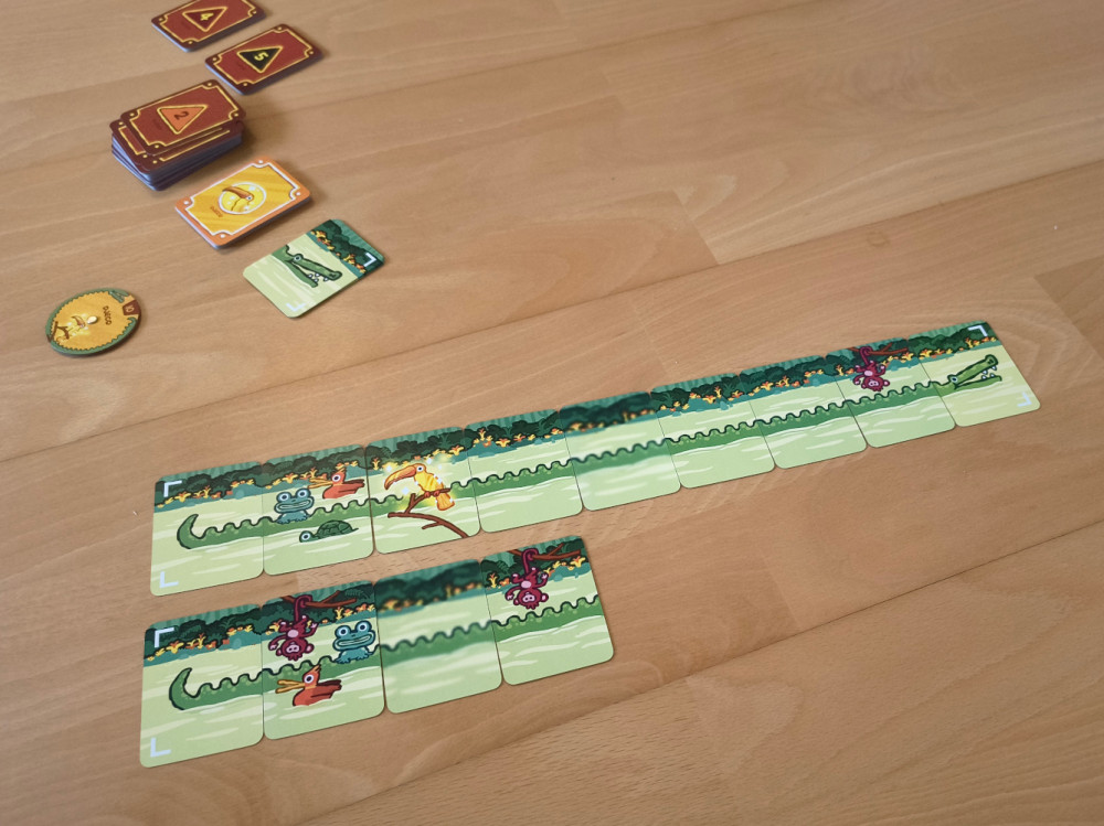 Sehr stark wiegen die Punkte für das längste Krokodil. Üblicherweise hat man mit einem langen Krokodil ohnehin schon einige Punkte gesammelt. Dann noch zwei Bonuskarten bekommen, die bis zu zehn Punkte bringen können; das ist echt ein Hammer.