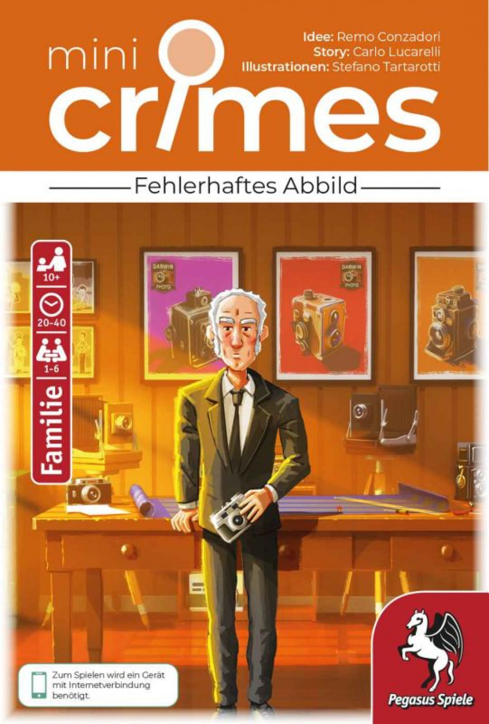 Bei MiniCrimes – Fehlerhaftes Abbild, handelt es sich um ein besonders kurzes Detektiv Abenteuer aus der MiniCrimes-Spielereihe. Diese zeichnet sich durch ein besonders kurzes Spielgeschehen aus, welches, klassischerweise, aus einer großen Tatortkarte und zehn kleinen Hinweis-Karten besteht. Via Einleitungstext und QR-Code zum Herunterladen der Lösungen, müssen in jedem Szenario drei Fragen beantwortet werden, was nur durch das genaue Betrachten des Tatorts und der Hinweise möglich wird. Je mehr Hinweise benötigt werden desto schlechter schneidet man jedoch in der Punktewertung ab – Kombinationsgabe ist hier also das A und O.